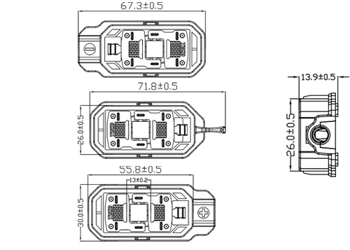 額定電流 / Corresponding current 20A、25A、30A  | 防水結(jié)構(gòu) / Waterproof Structure 灌封膠 / Potting sealant  |